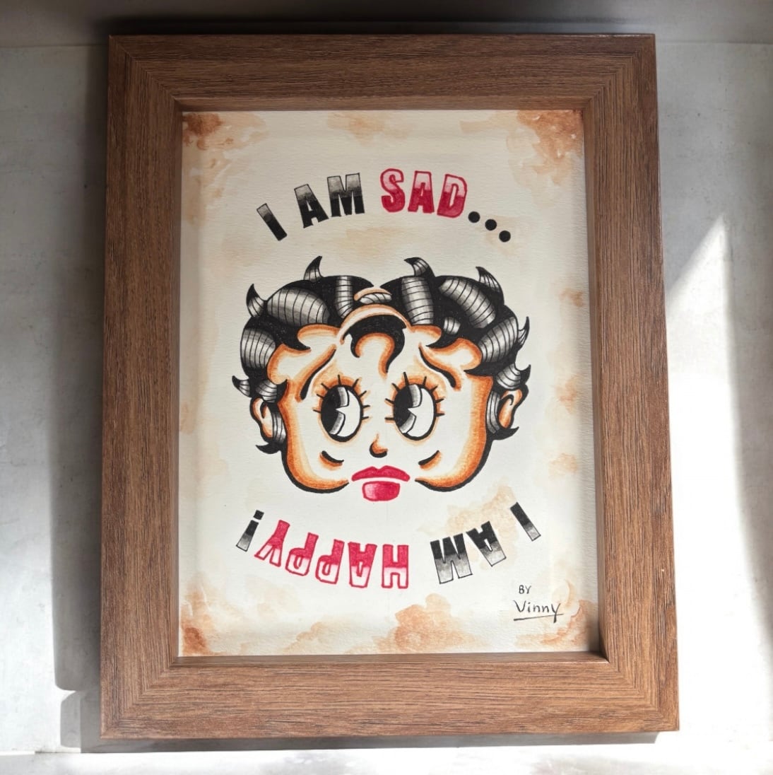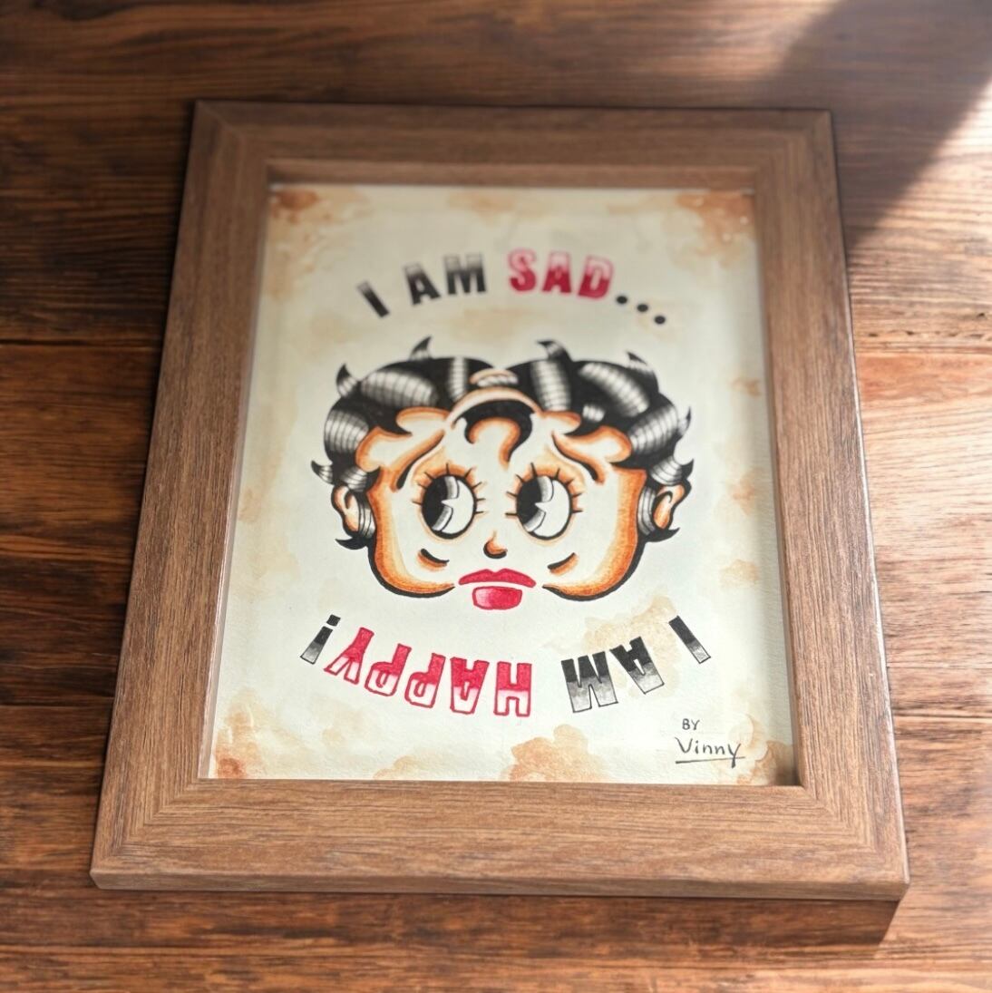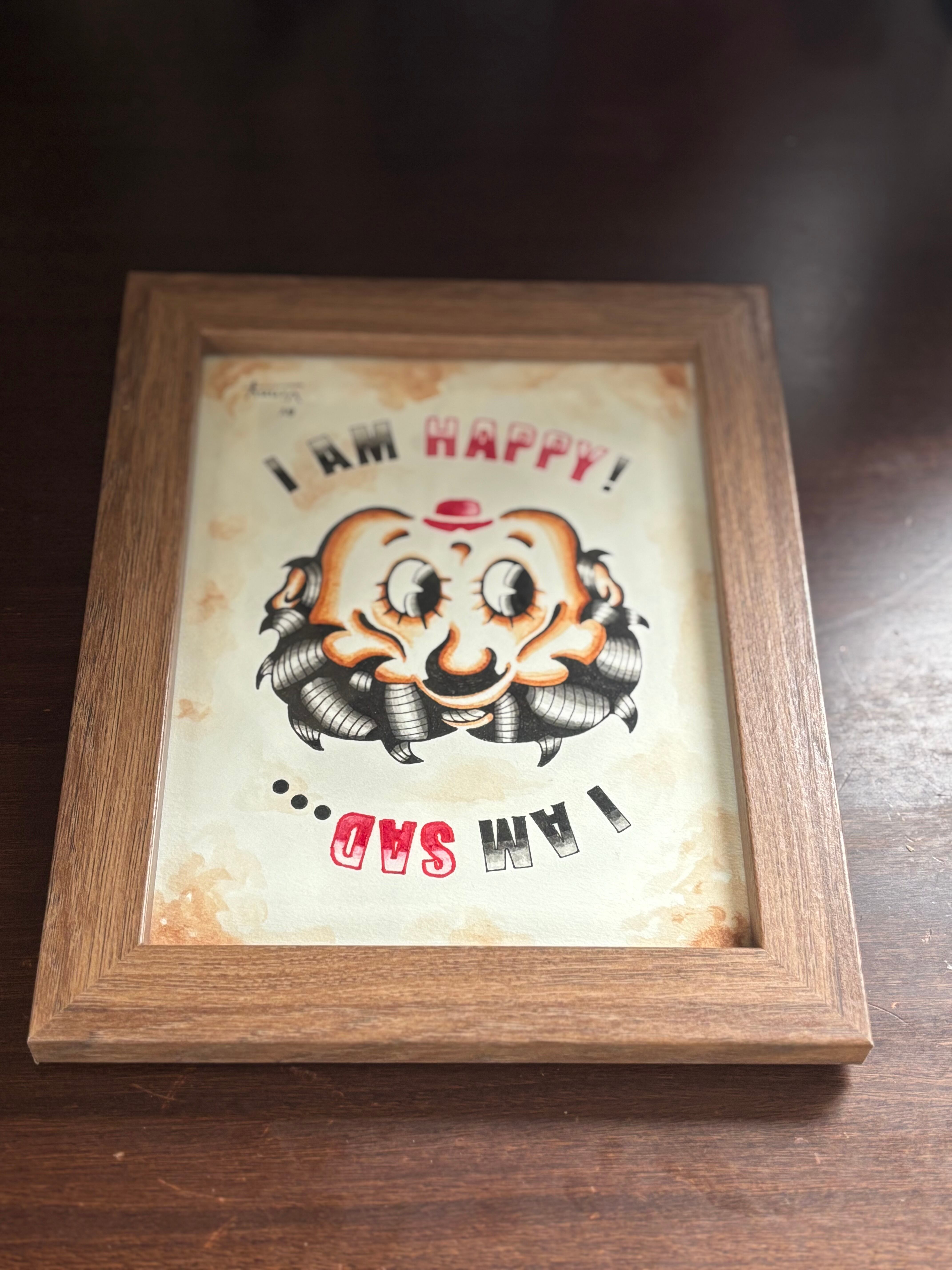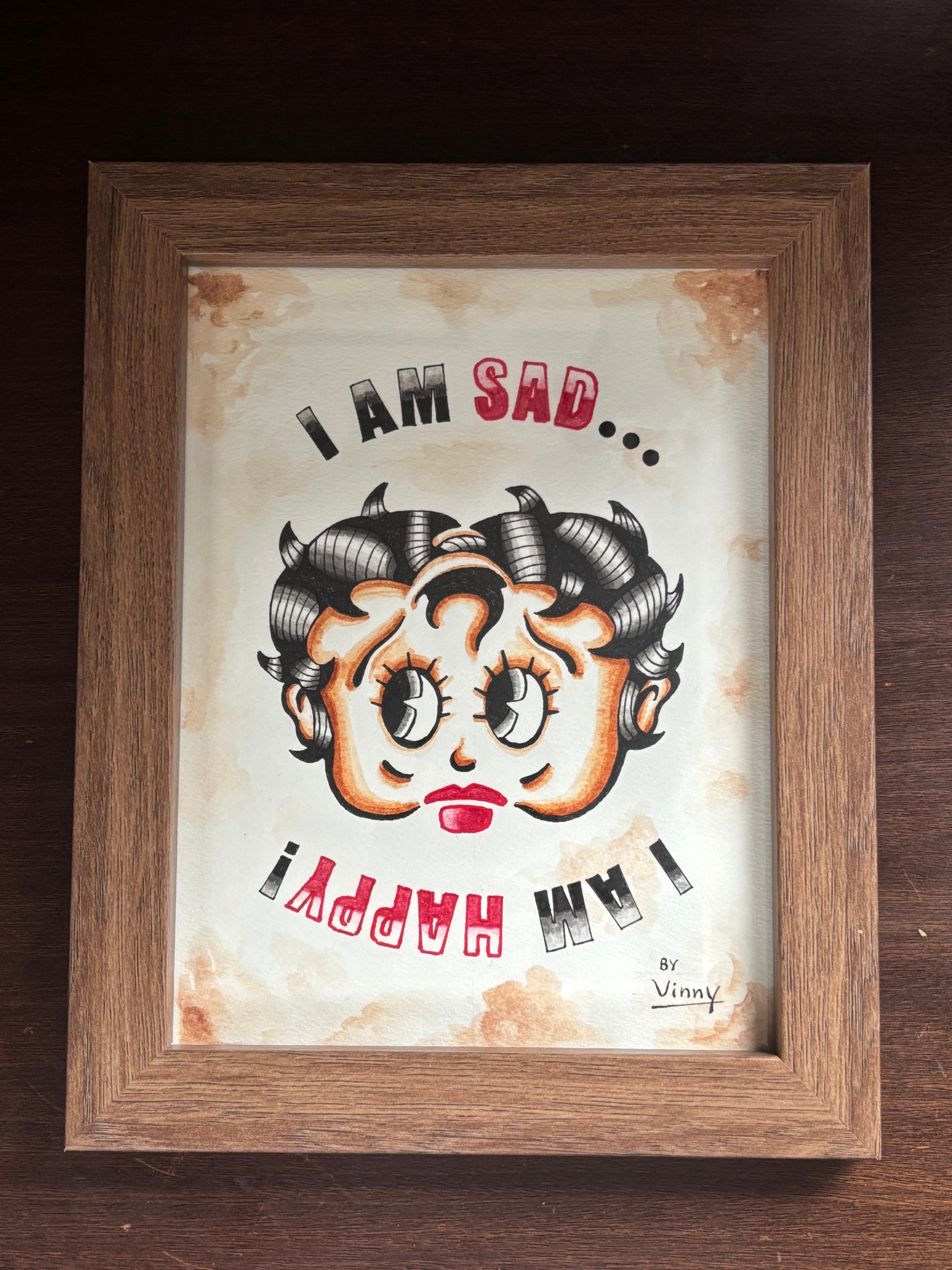 「SAD BETTY」と赤いハットが特徴の「HAPPY UNCLE」のいわゆる「逆さ絵」デザインです。