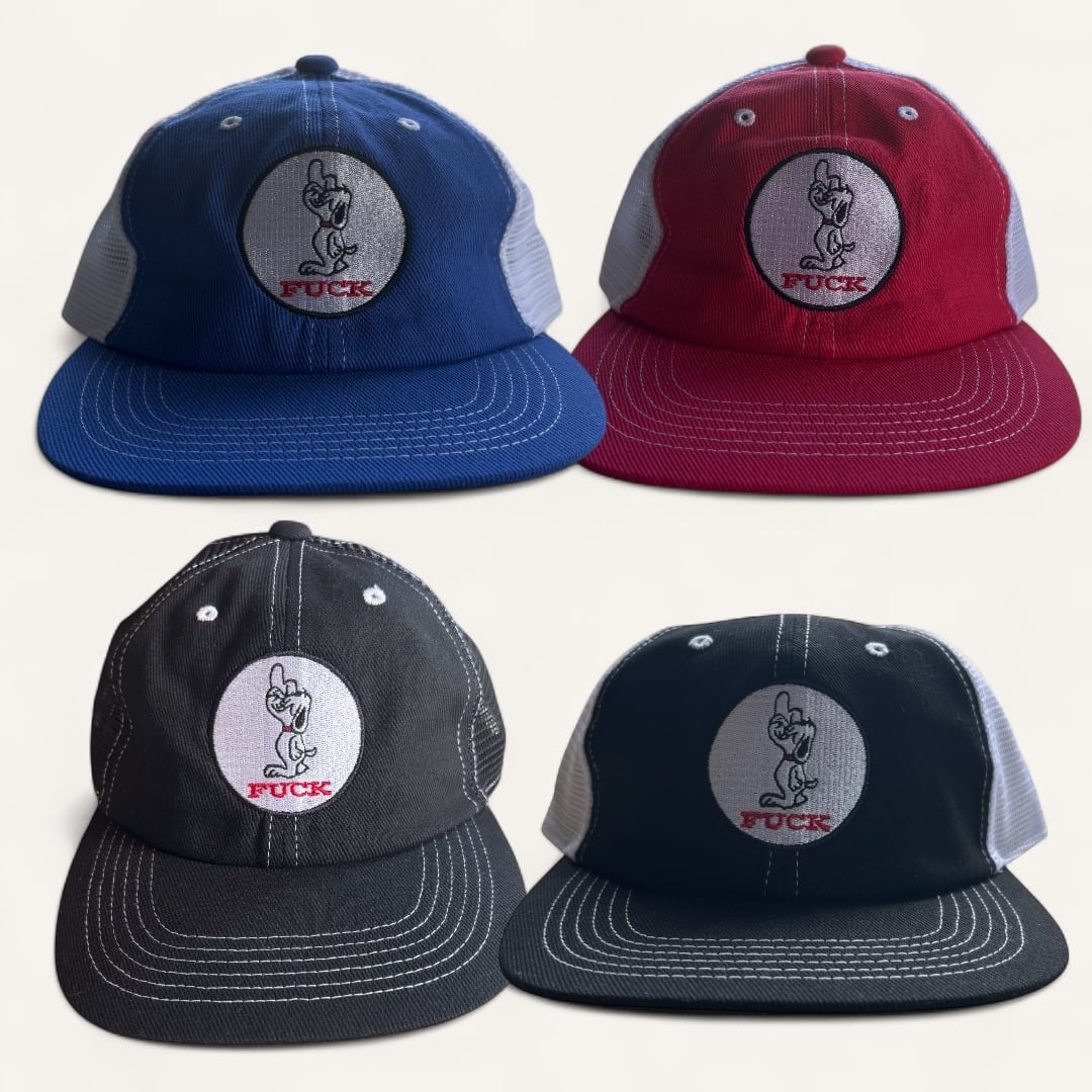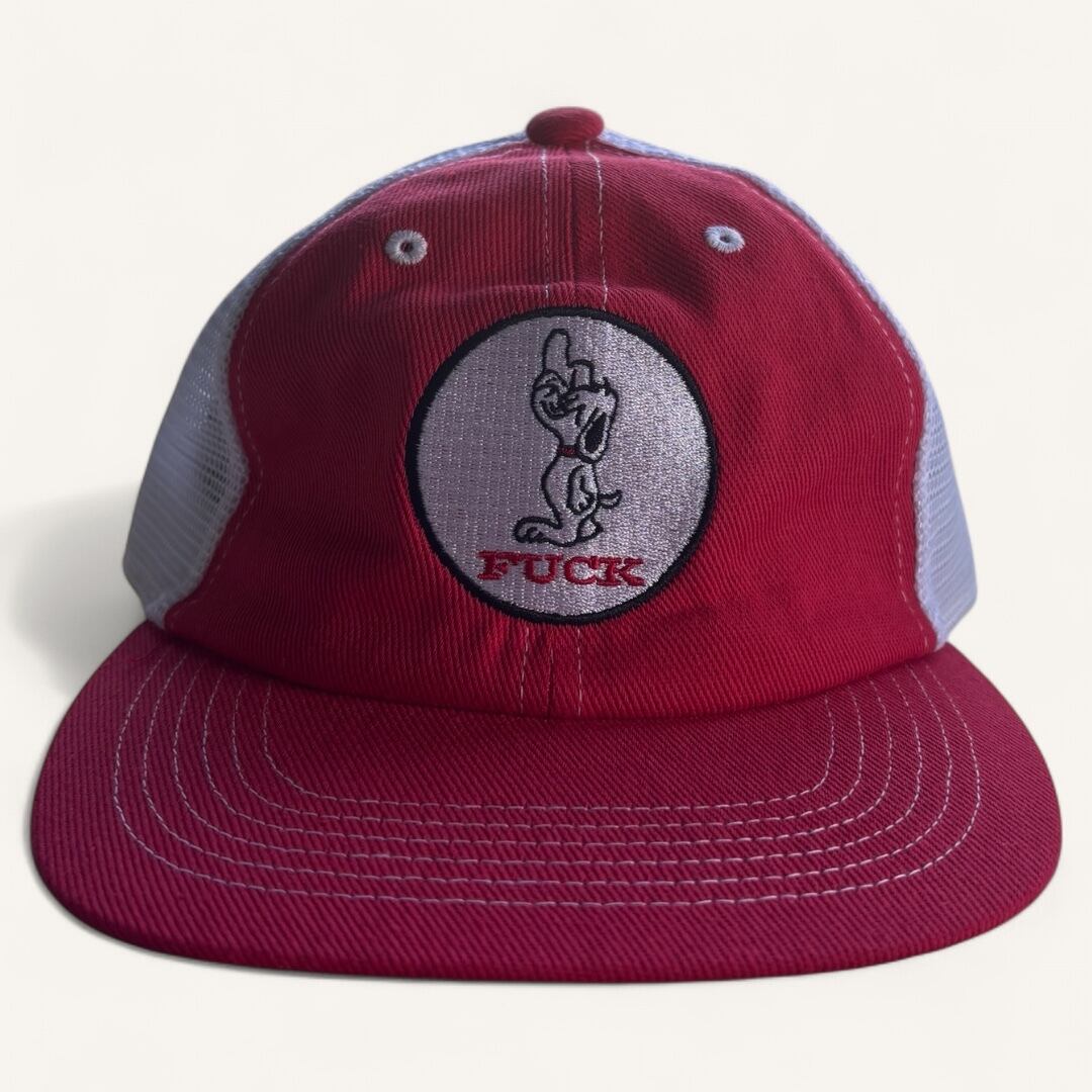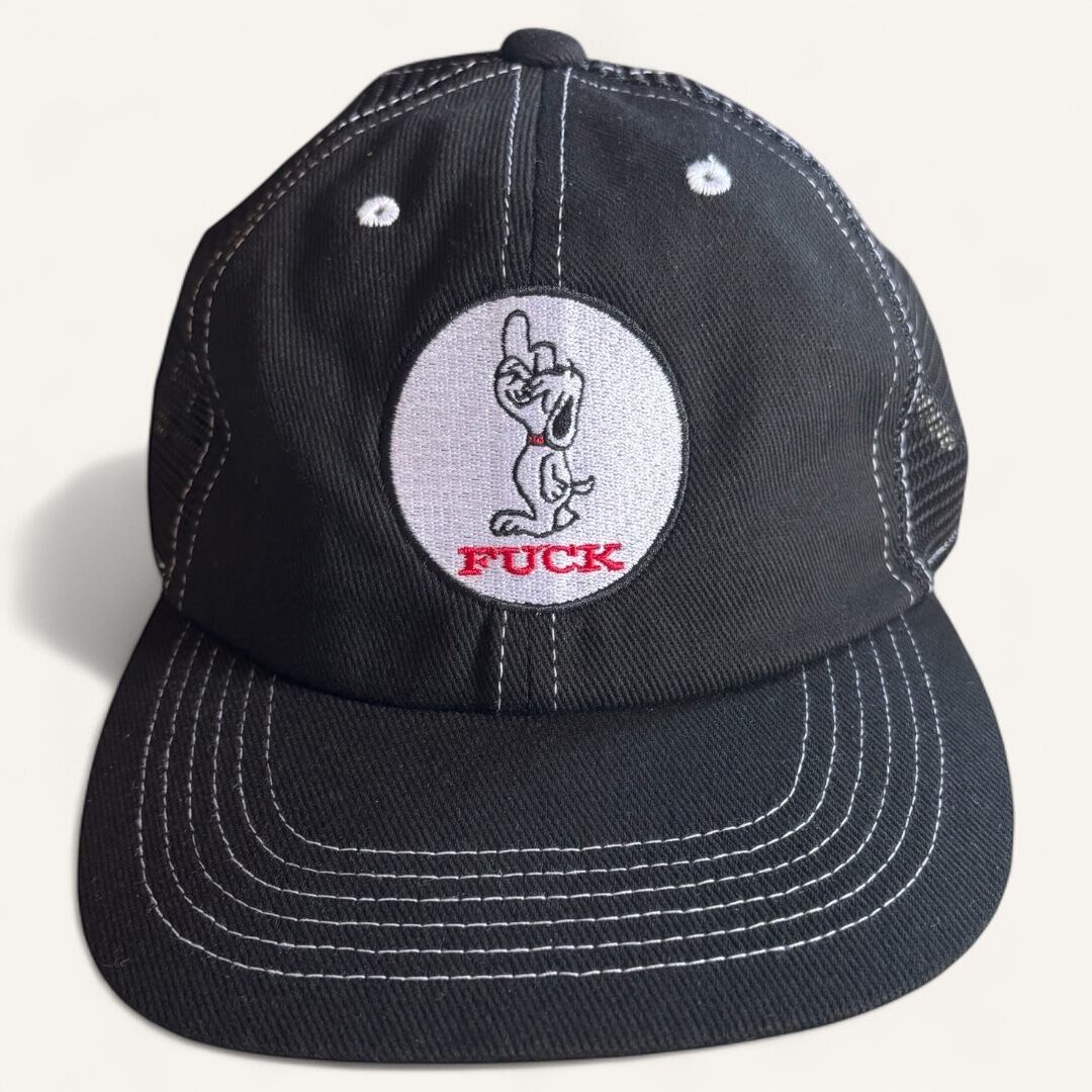 あの有名な犬をモチーフに刺繍を施したメッシュキャップ