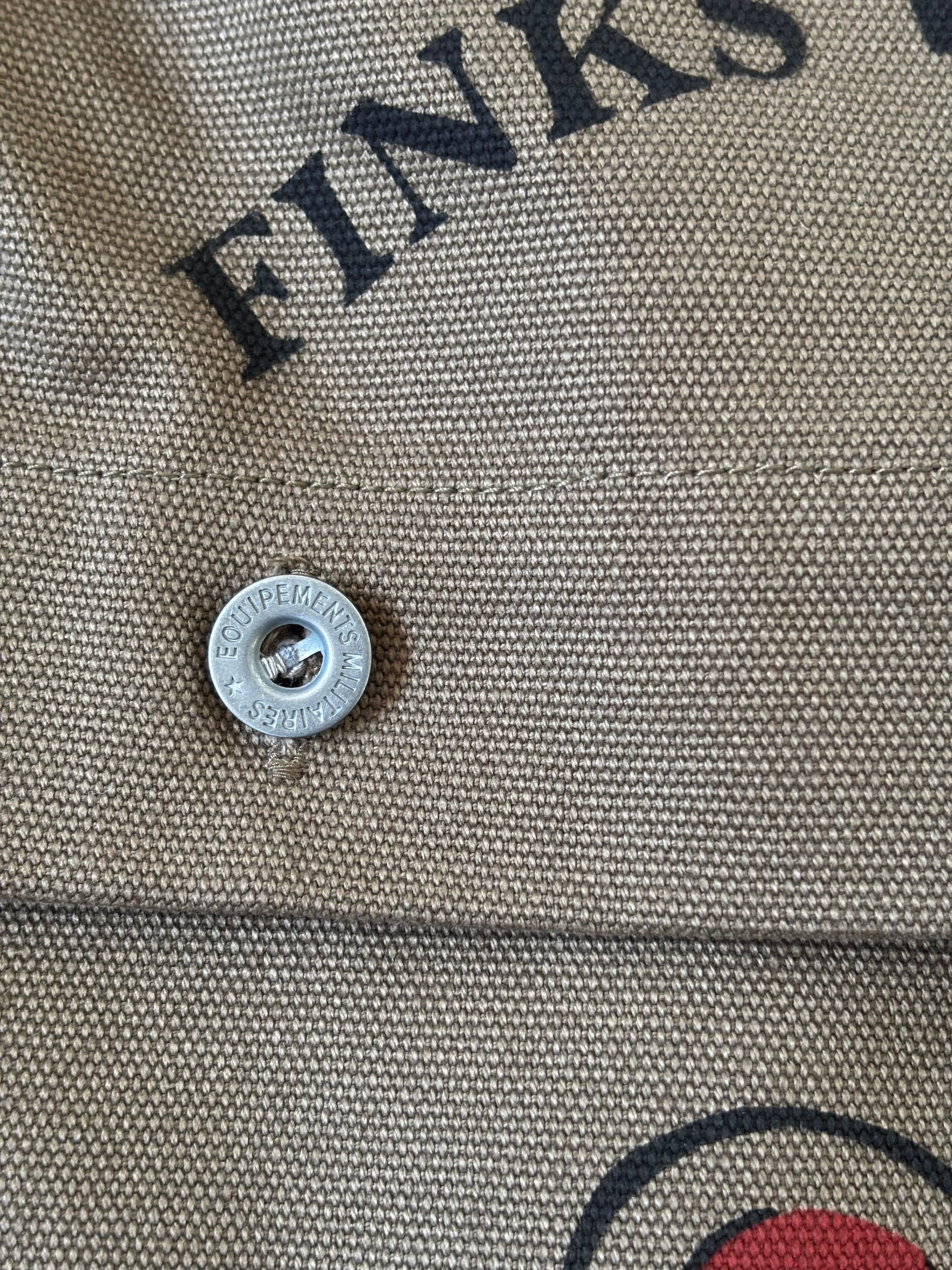ボディーはコットンキャンバスの厚手の生地や刻印のあるメタルボタン等細部にわたるまで再現しております。