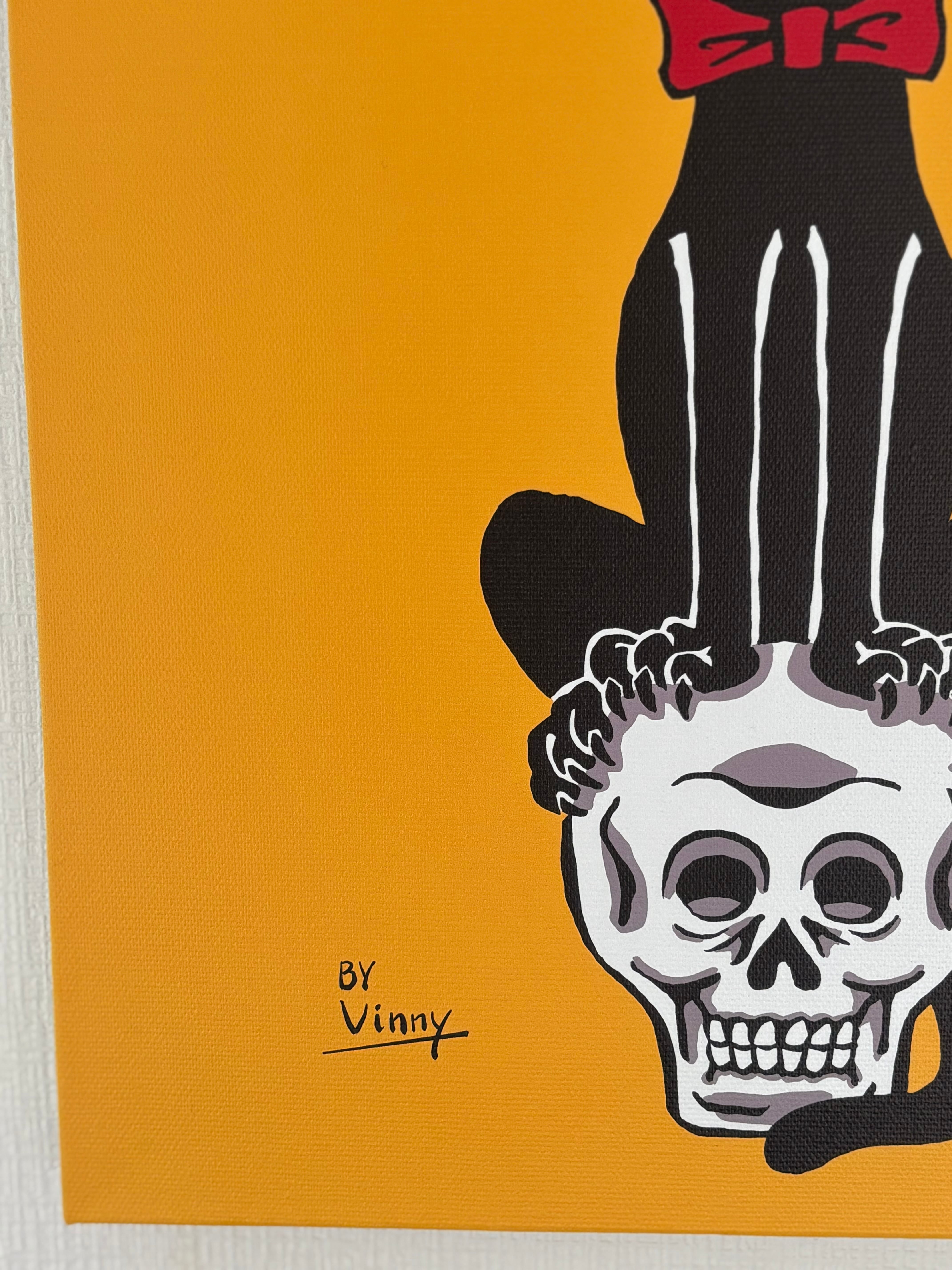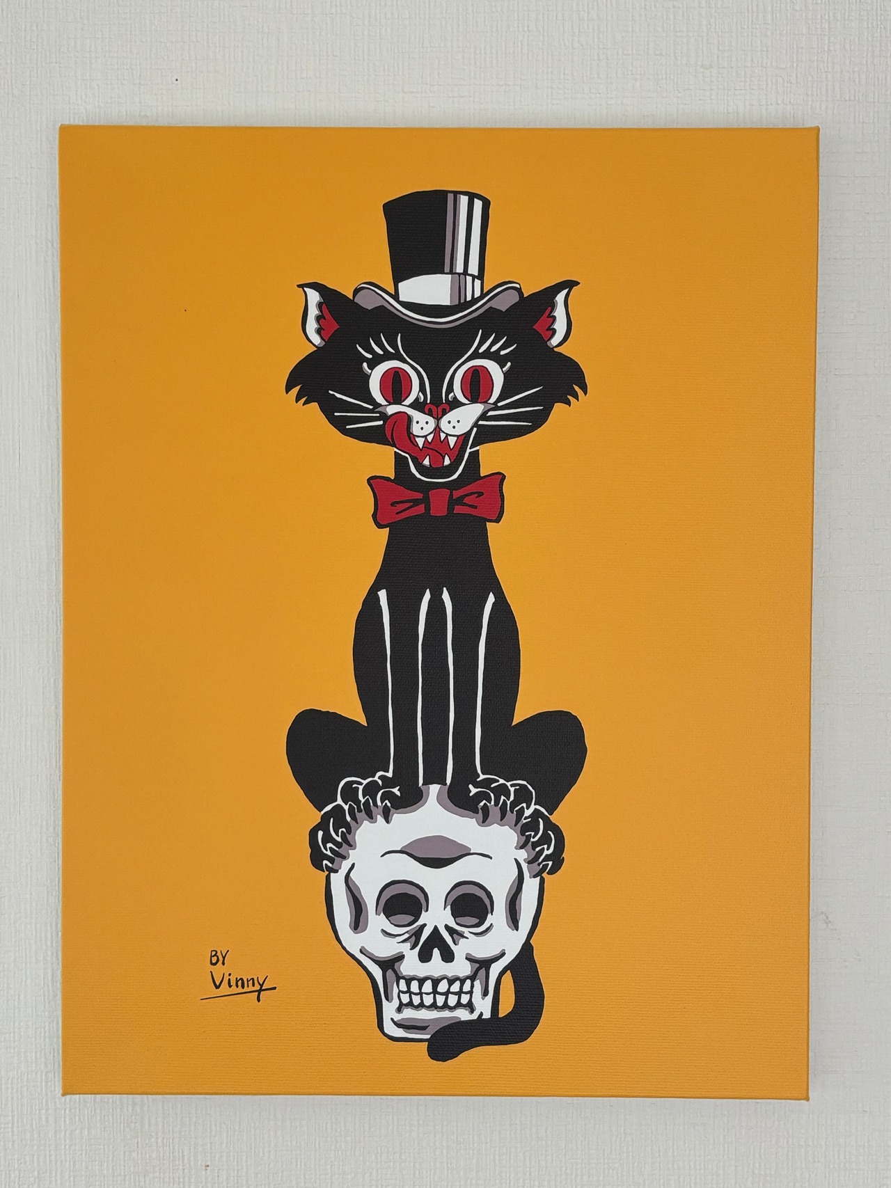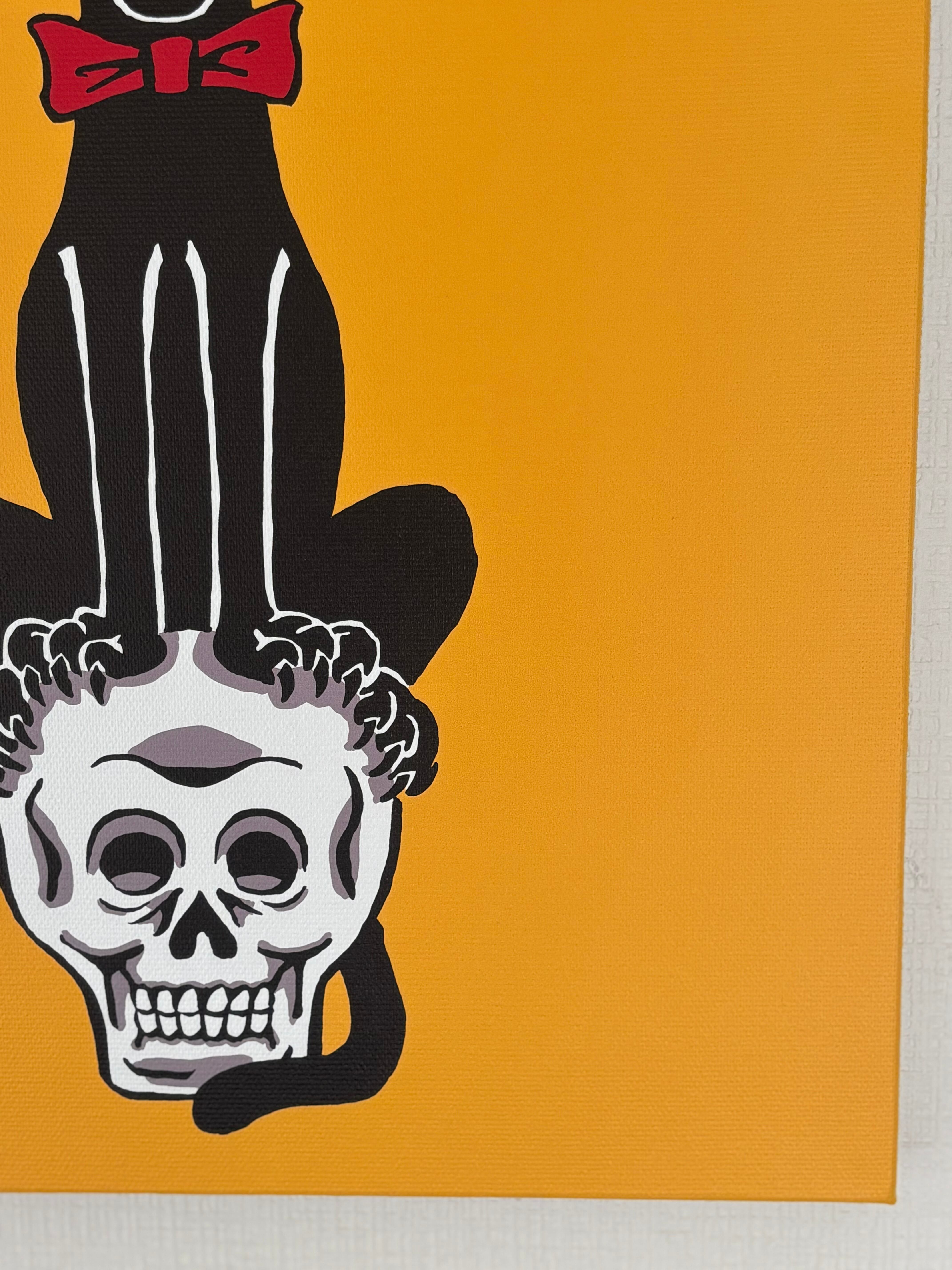 Top Hat Cat on Skull アートキャンバス