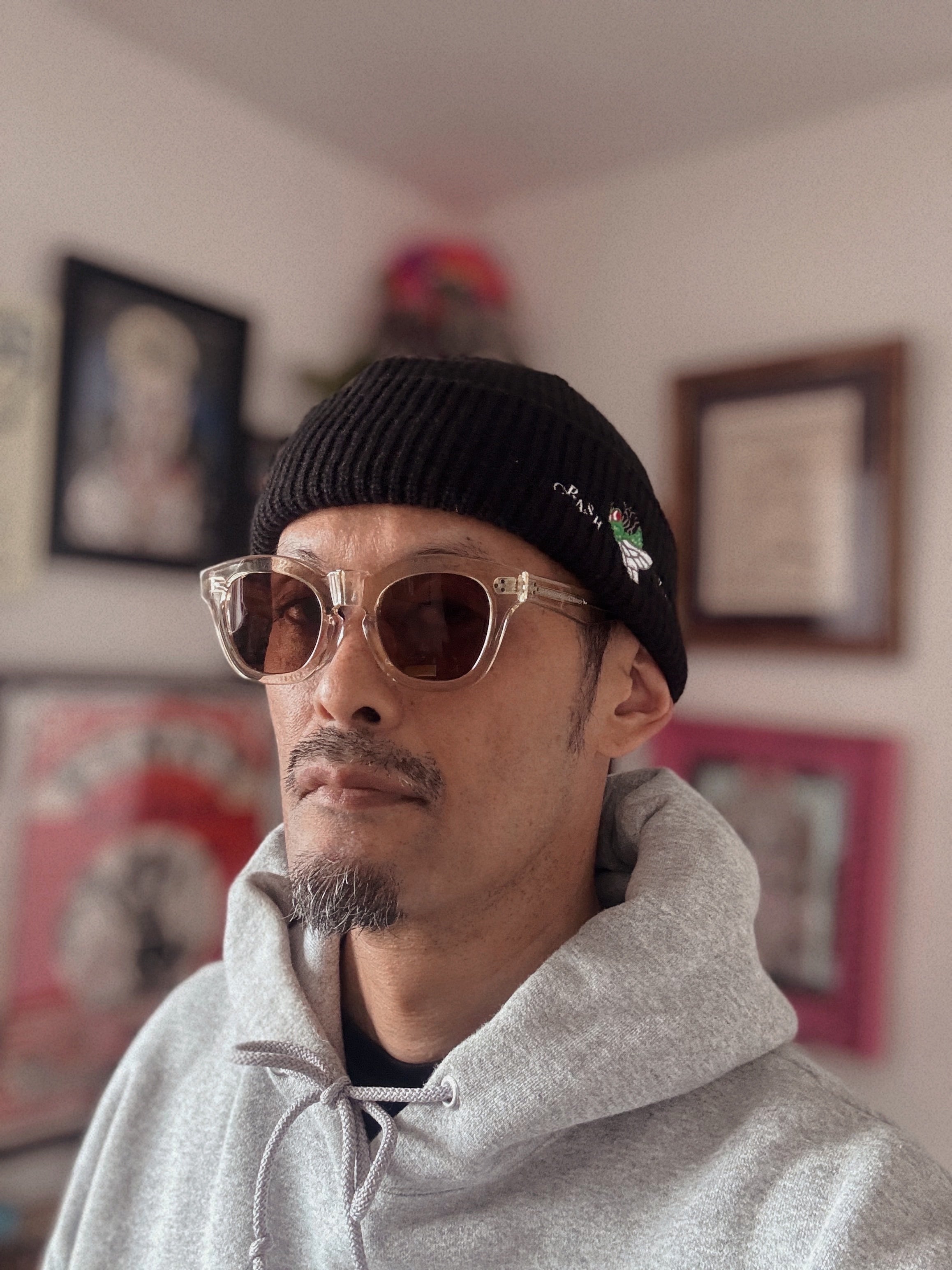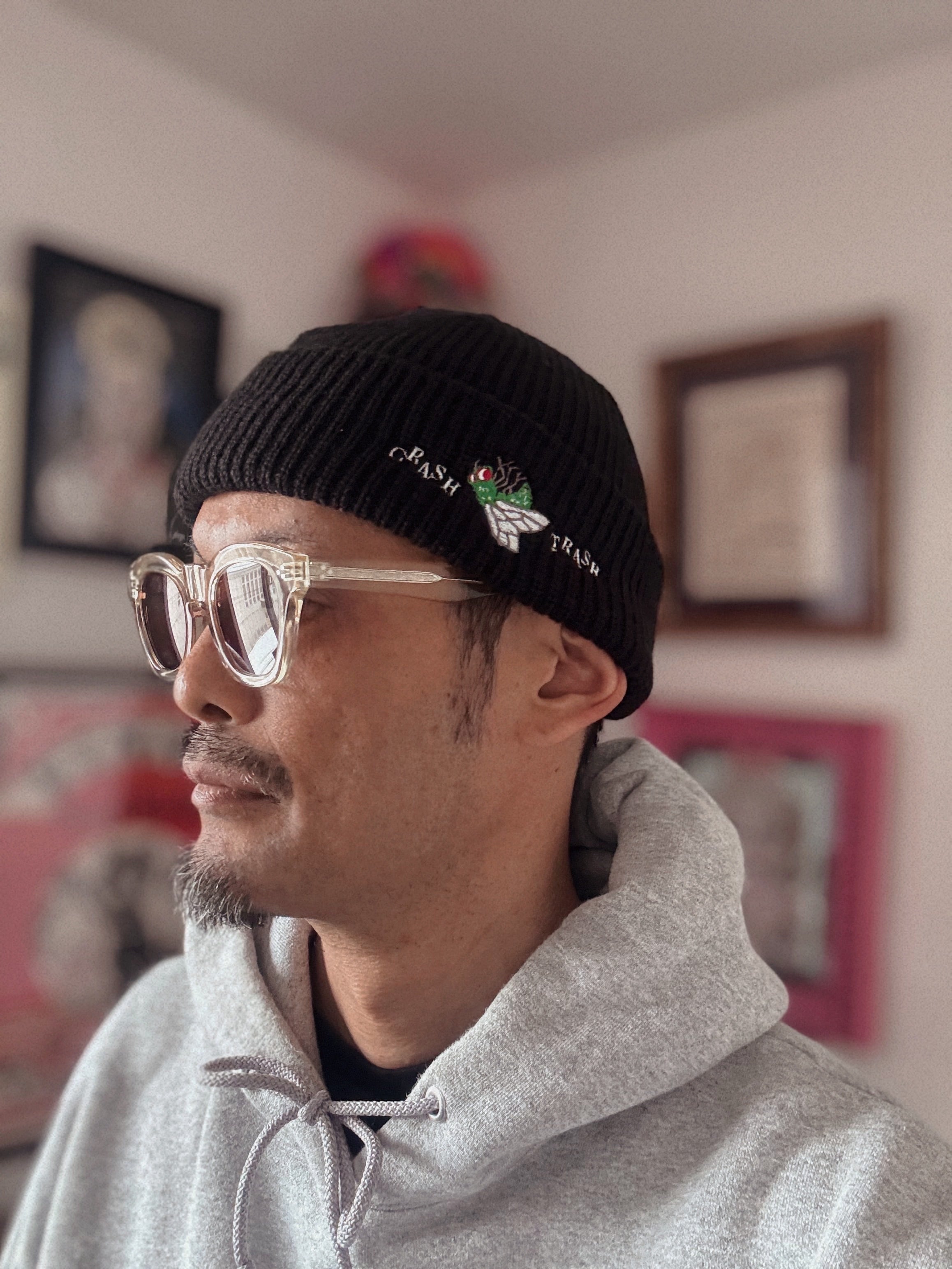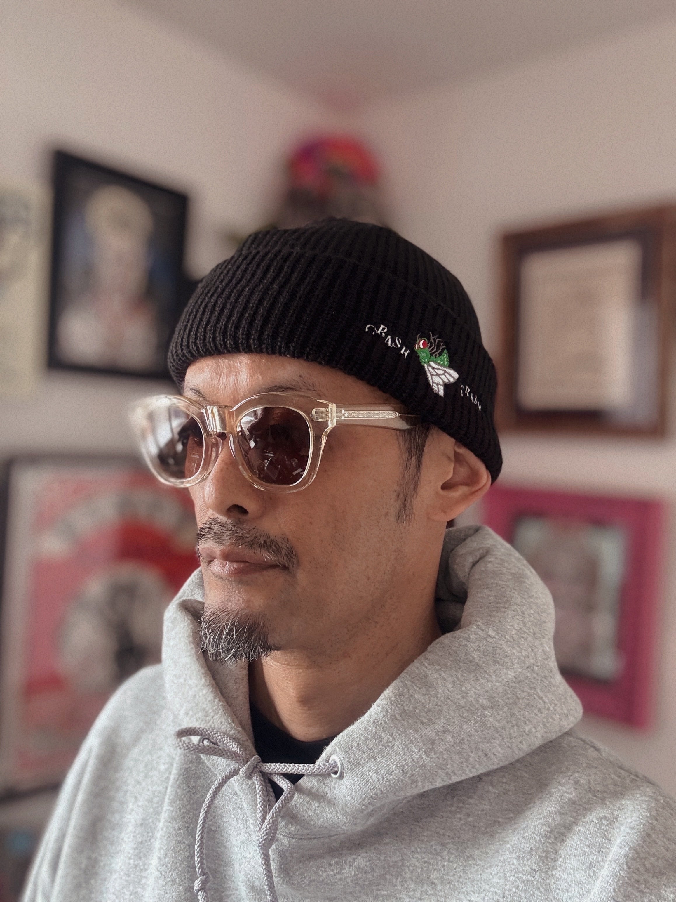 アクリルニット、ローゲージで長すぎず被りやすい深さのニットキャップです。