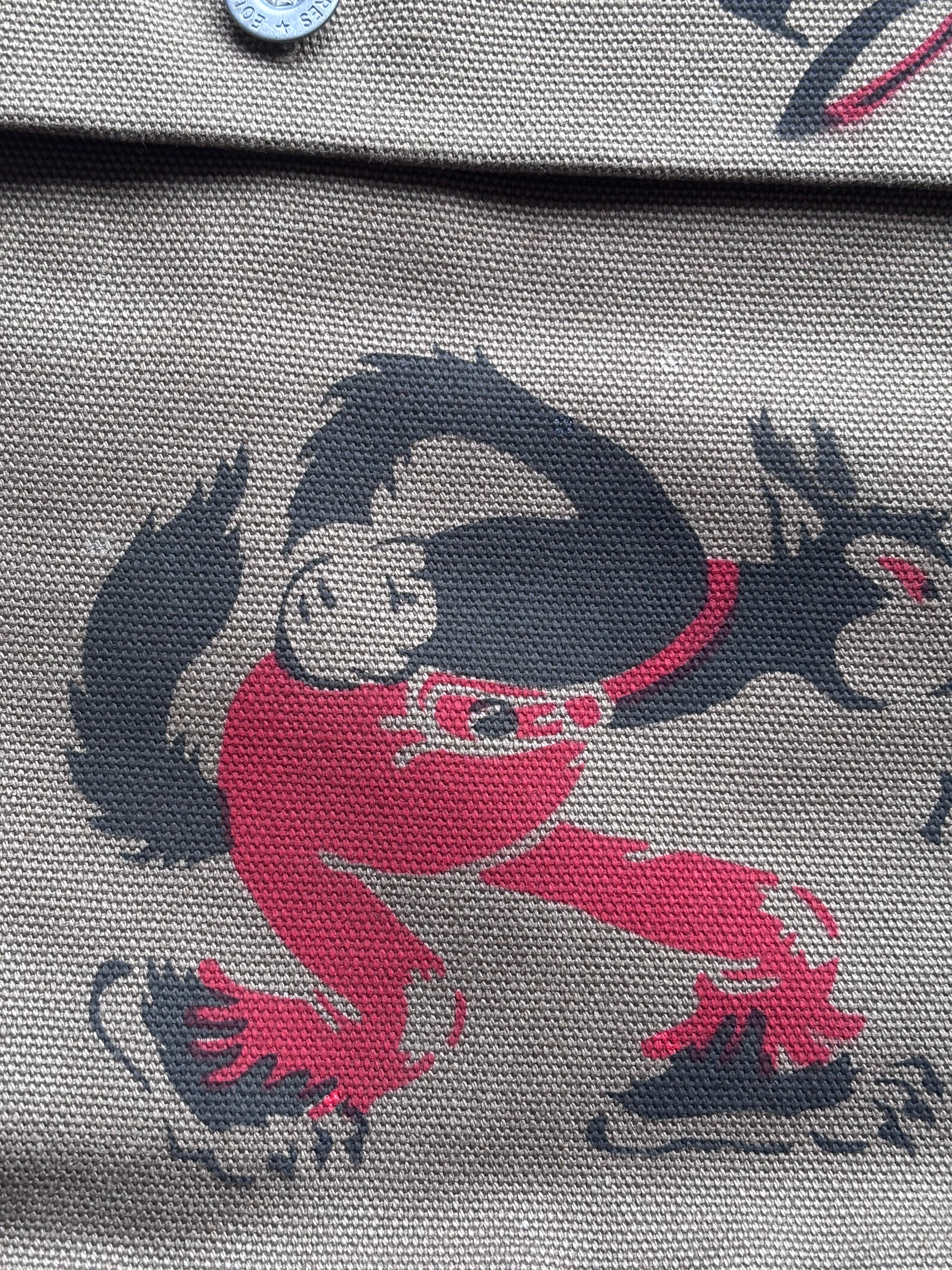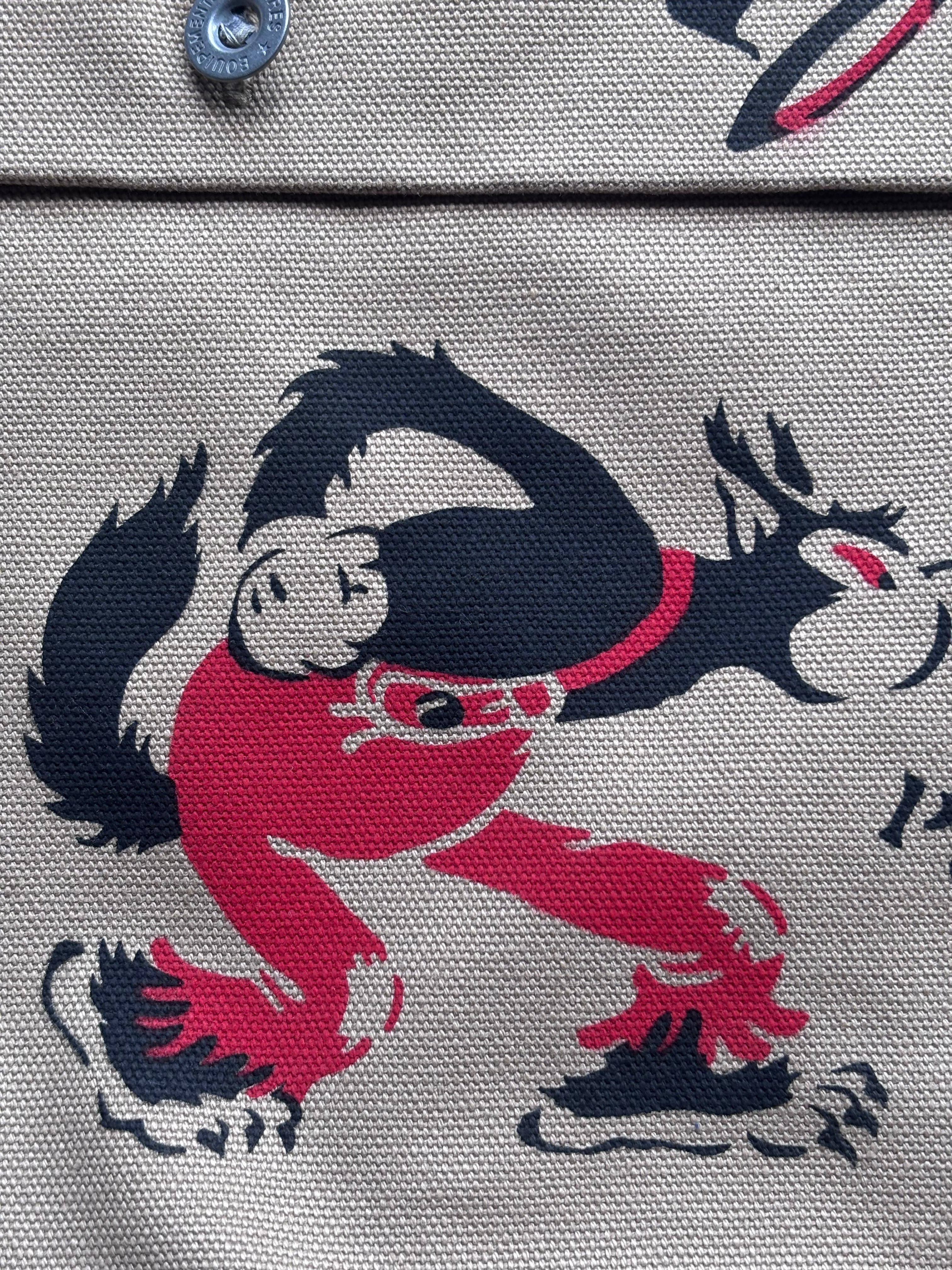 ボディーはコットンキャンバスの厚手の生地や刻印のあるメタルボタン等細部にわたるまで再現しております。