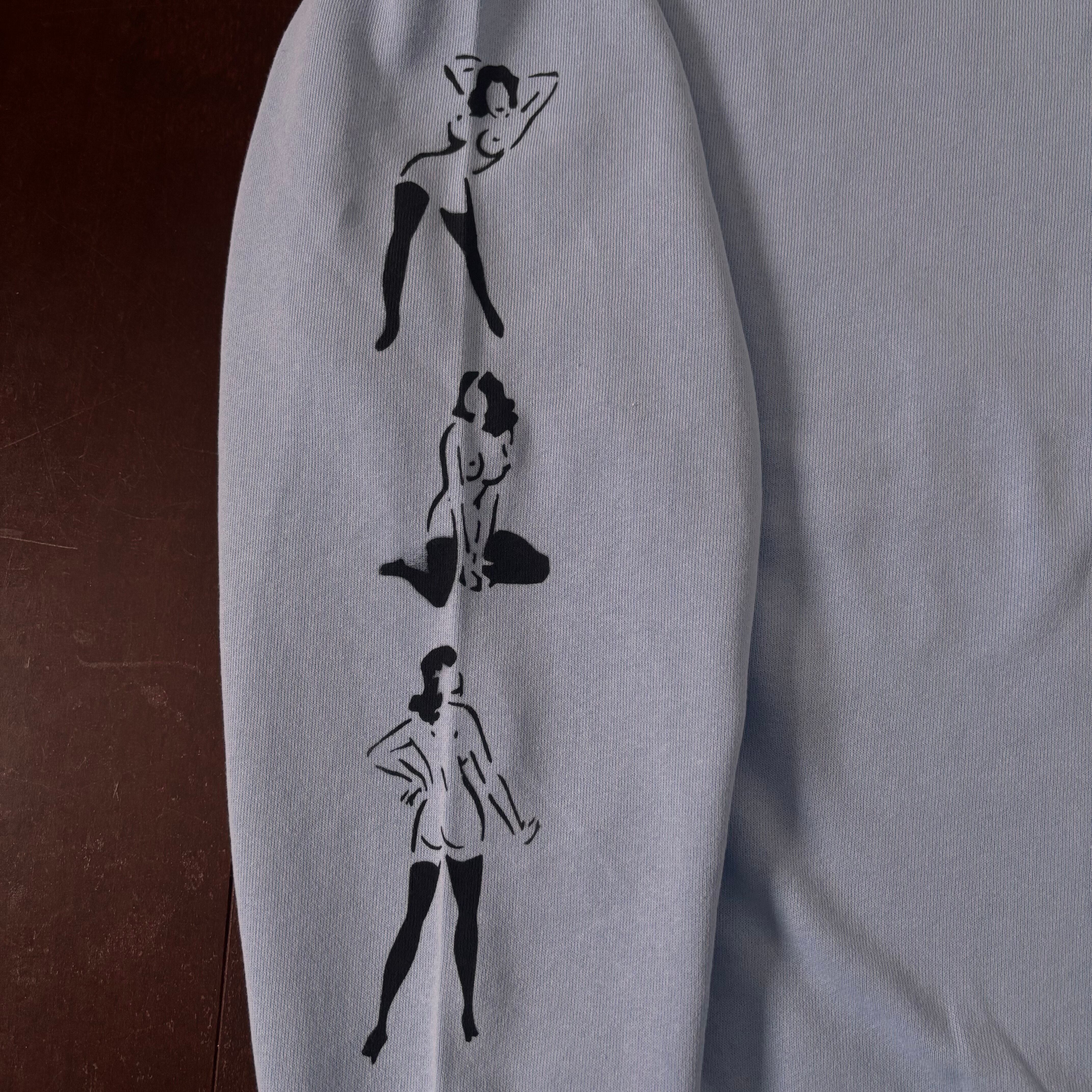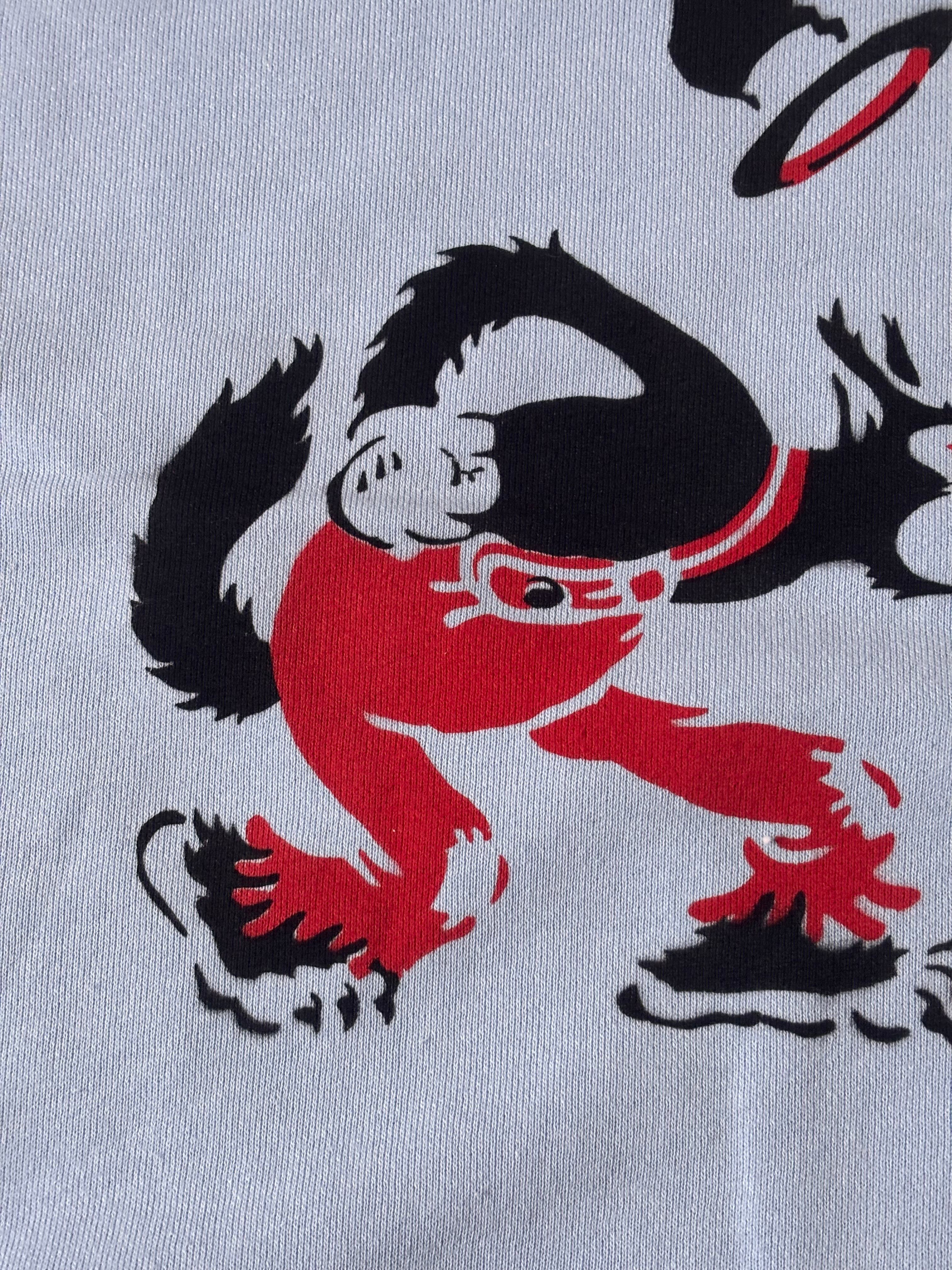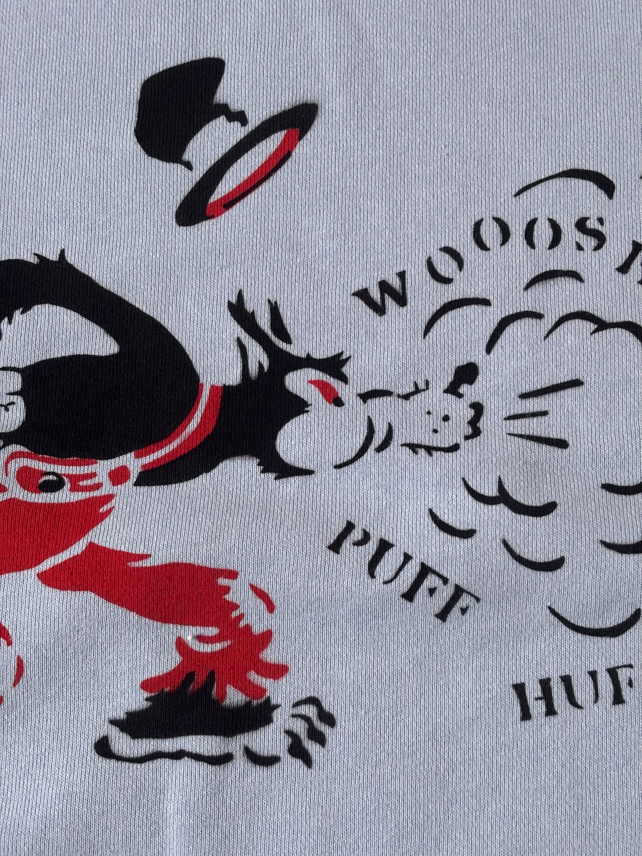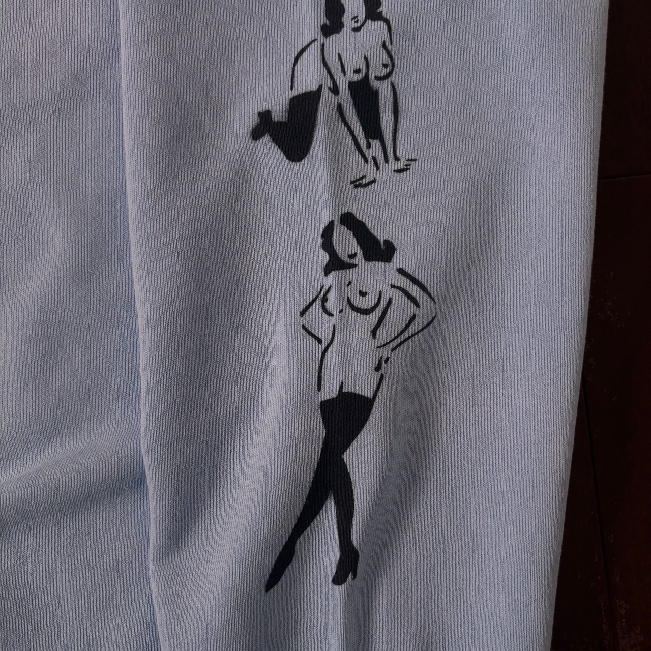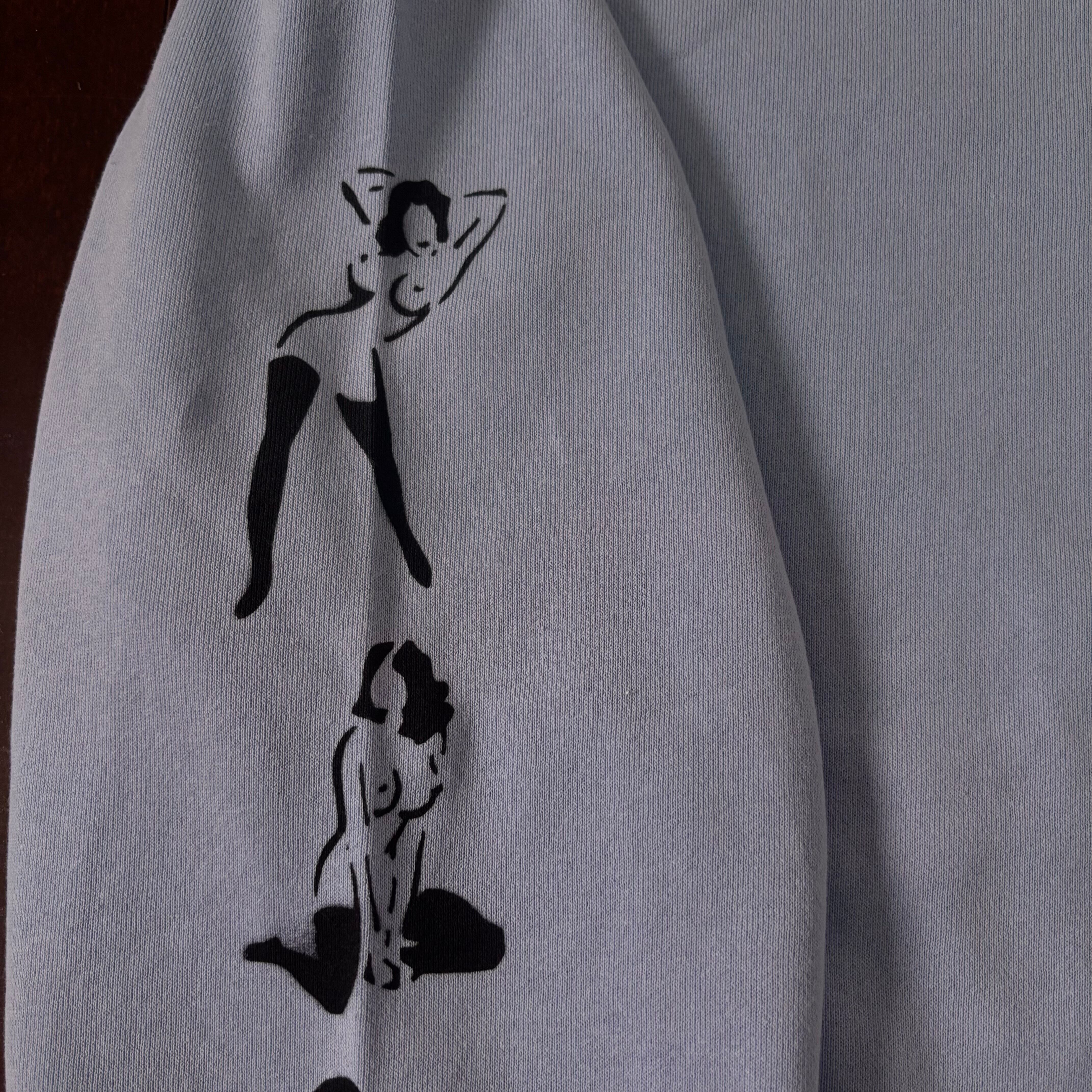 8.8オンス、裏パイル スウェットにステンシルを施しました。ロンT感覚で着用頂けます。