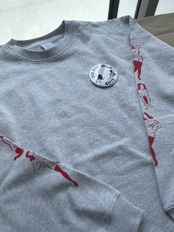 8.8オンス、裏パイル スウェットにステンシルを施しました。ロンT感覚で着用頂けます。